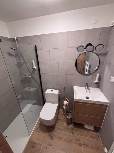 De moderne badkamer biedt functionele luxe en een frisse uitstraling.