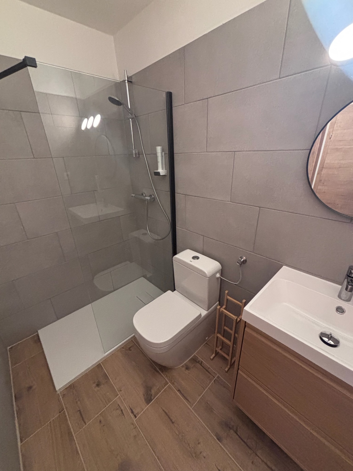 De moderne badkamer biedt functionele luxe en een frisse uitstraling.