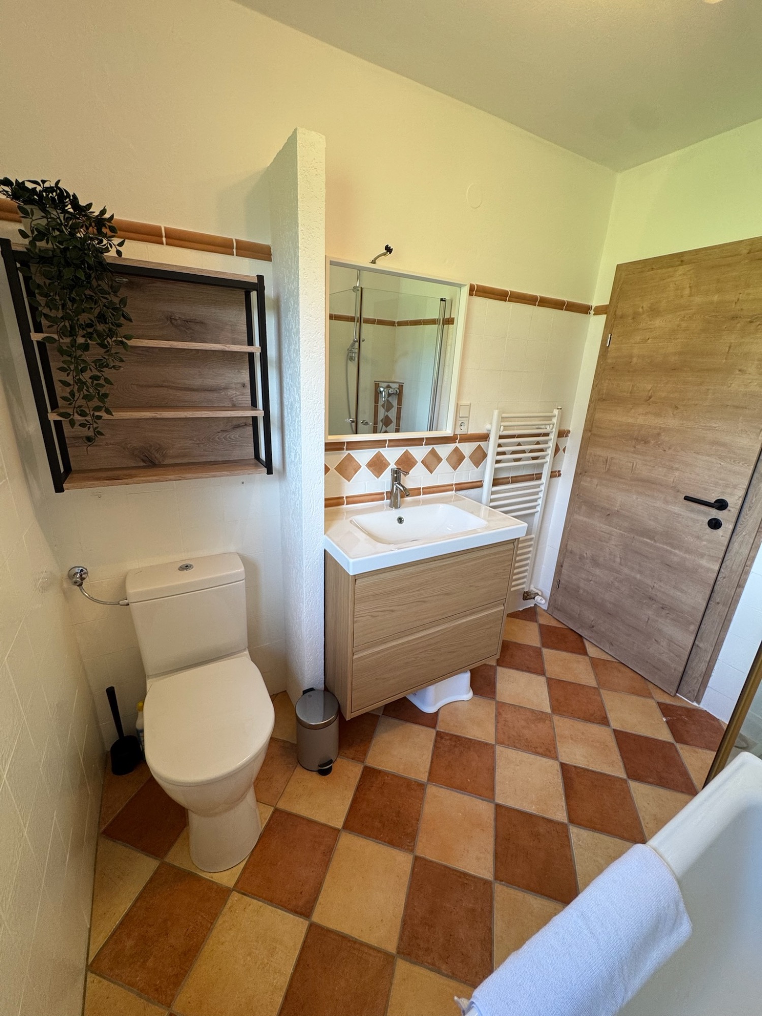De moderne badkamer biedt functionele luxe en een frisse uitstraling.